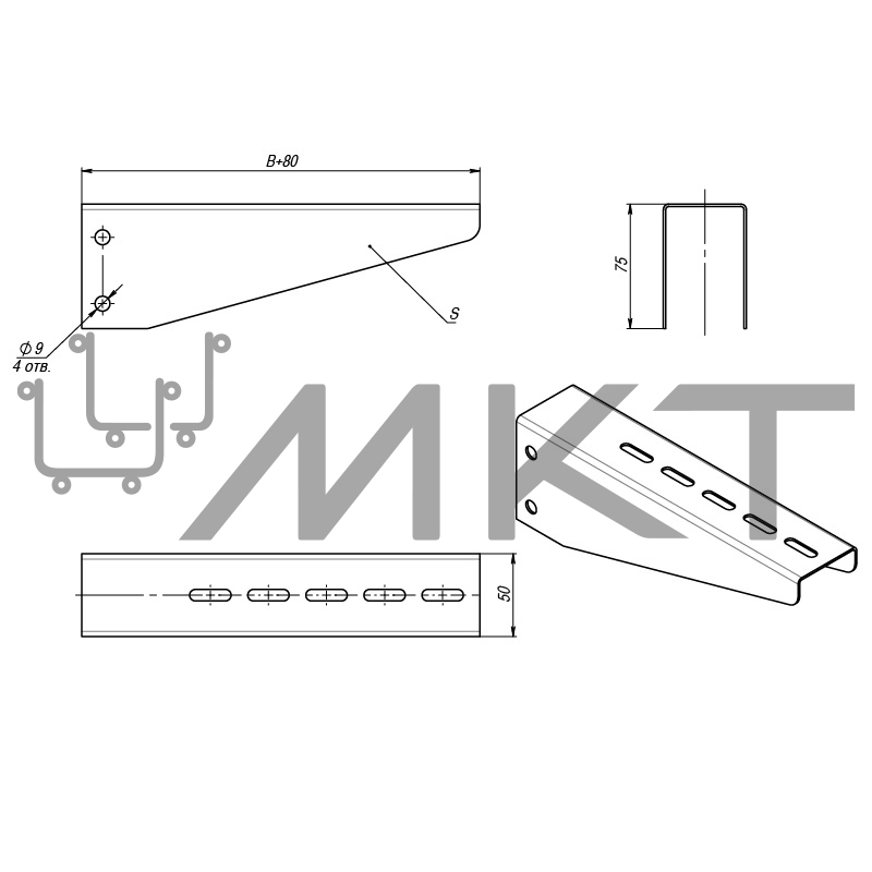 Кронштейн без опоры предназначен для крепления к вертикальным поверхностям совместно с П-профилем 56х30 для организации кабельной трассы. Для фиксации КПП рекомендуется использовать шестигранные болты и гайки с фланцем.