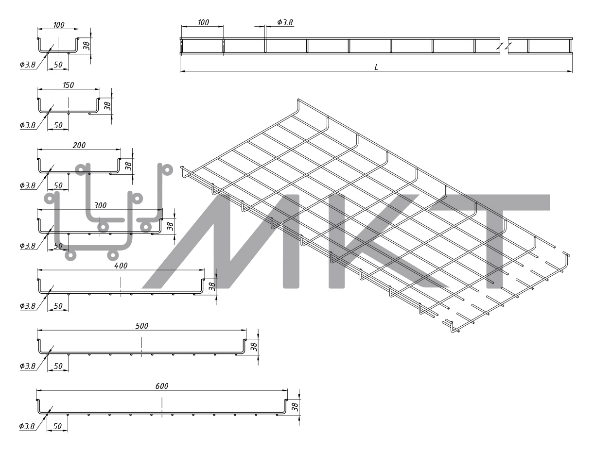 Лоток проволочный предназначен для организации кабельной трассы любой сложности в коммерческих предприятиях, производственных помещениях и при разработке промышленных комплексов, где необходим визуальный контроль и быстрый доступ к кабельным трассам. Используется как внутри, так и снаружи здания, применим и к агрессивным средам. Монтаж производится при помощи соединителей и фиксаторов.