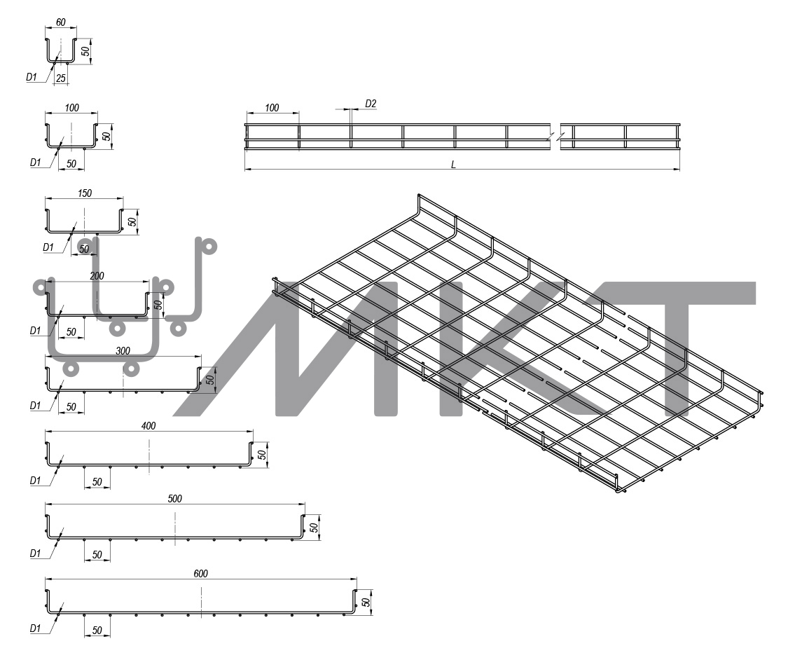 Проволочный лоток предназначен для организации кабельных трасс любой сложности в коммерческих предприятиях, производственно-складских помещениях и при разработке агропромышленных комплексов, где необходим визуальный контроль и быстрый доступ к кабельным трассам. Используется как внутри, так и снаружи здания, применим и к агрессивным средам.