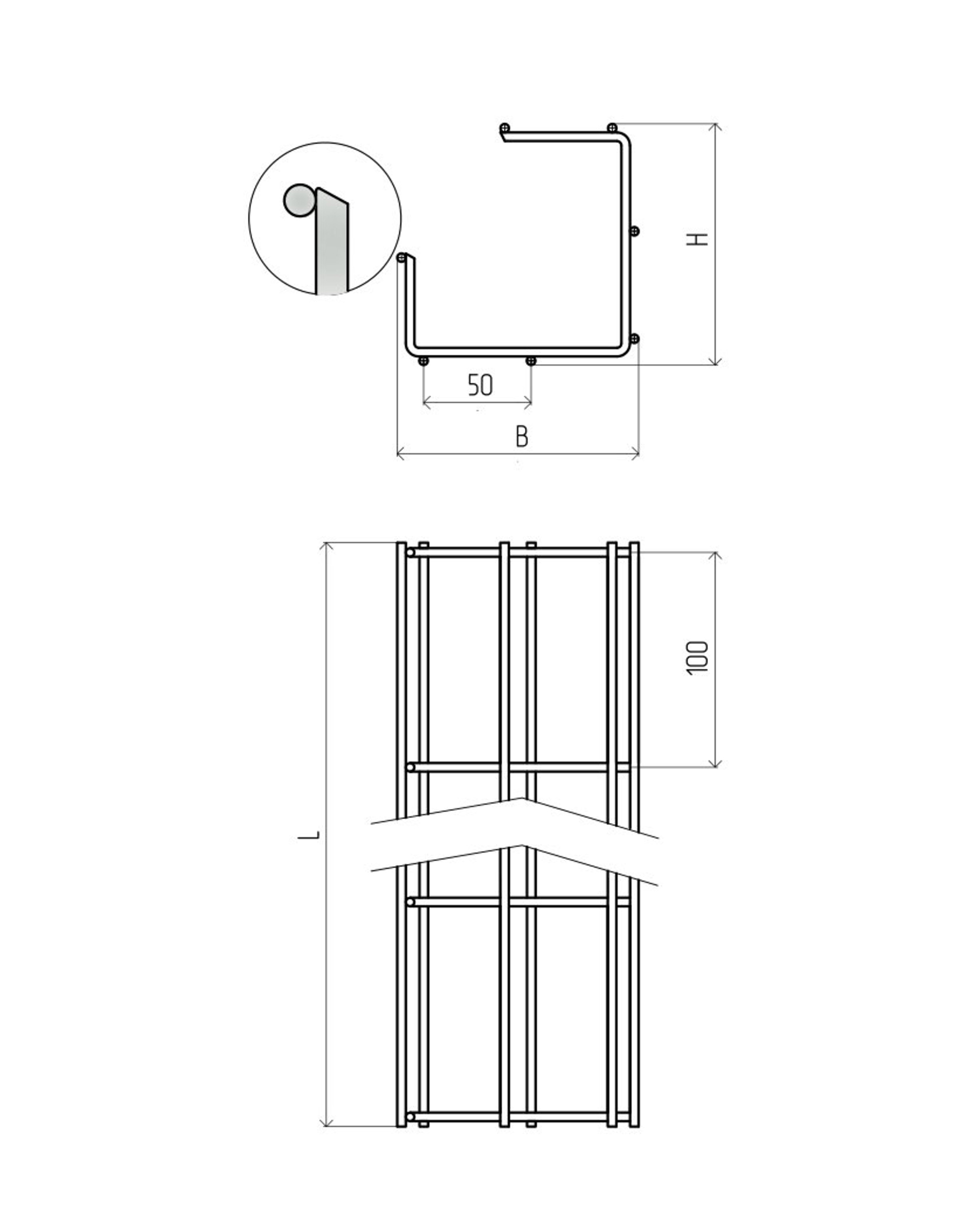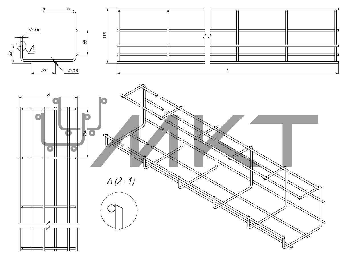 Конструкция потолочного лотка позволяет организовать подвес кабельной трассы к потолку без использования дополнительных держателей или кронштейнов.