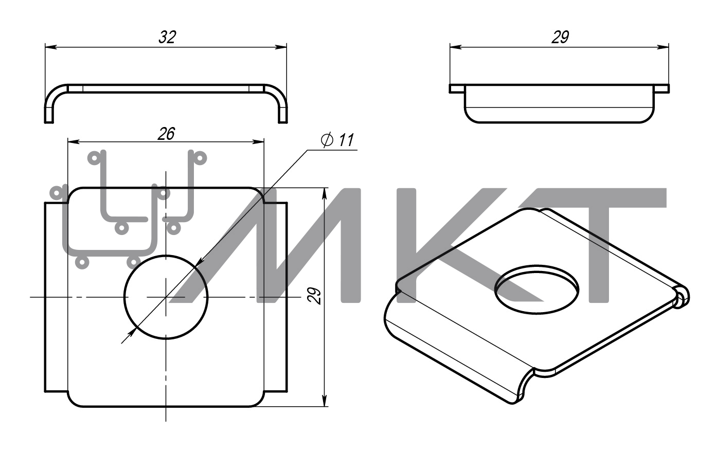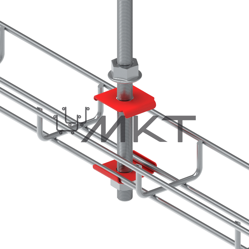 Большой фиксатор 25 используется для подвеса проволочных лотков 30х60 и 50х60 на шпильку (М6, М8, М10).