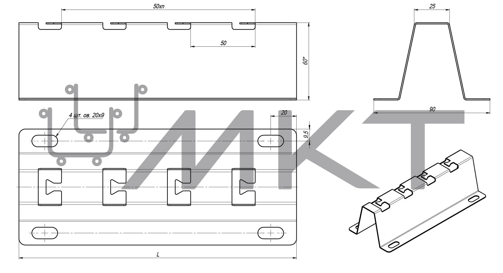 Настенно-напольный кронштейн предназначен для крепления лотка к полу и вертикальным поверхностям с помощью шестигранного болта. Для фиксации лотка необходимо согнуть лепестки кронштейна шлицевой отверткой.