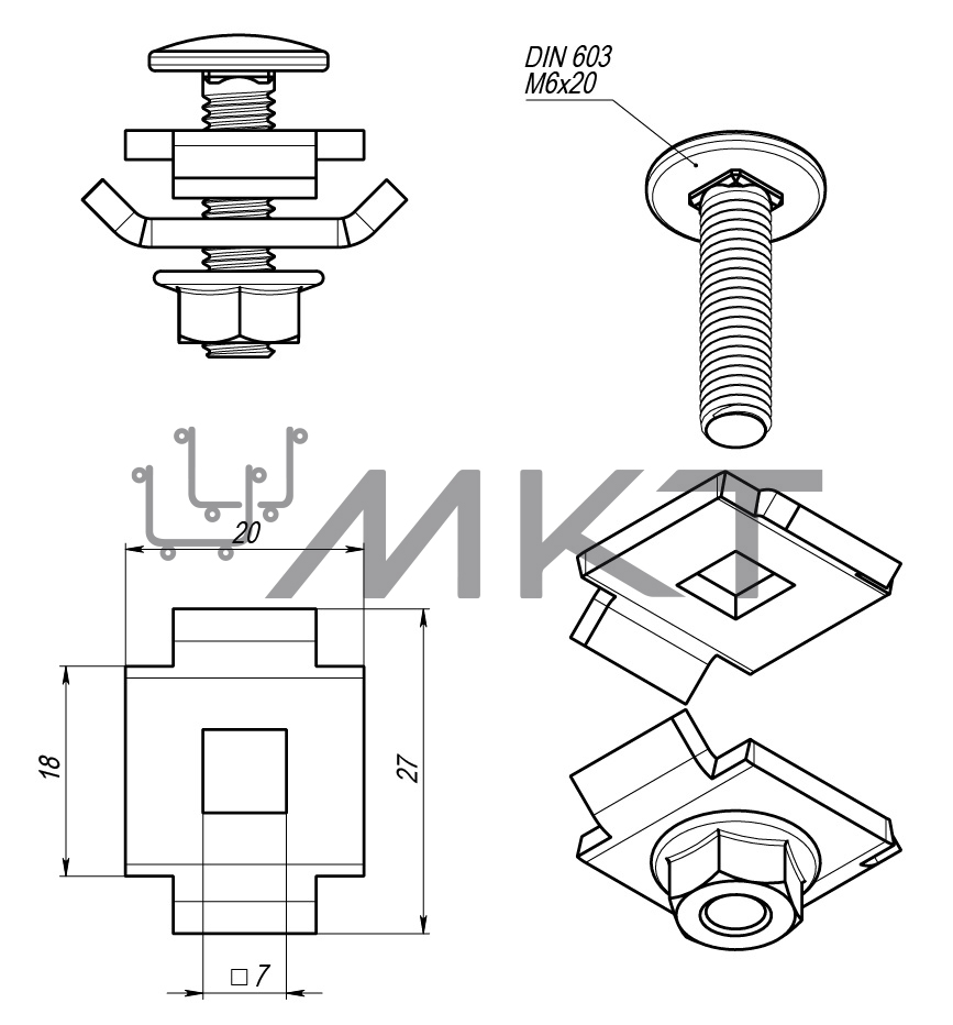 Винтовой соединитель двойной используется для соединения проволочных лотков между собой и для создания углов, поворотов, переходов на кабельной трассе.