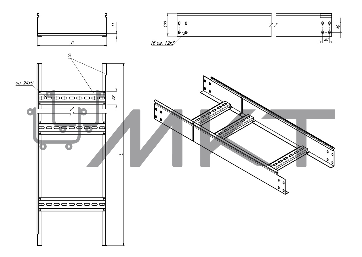 Лестничный лоток с 100 бортом предназначен для организации кабельных трасс в промышленных комплексах, производственно-складских помещениях, коммерческих предприятиях, а также снаружи зданий. Имеет повышенную несущую способность до 200 кг/м. Монтаж лотков между собой осуществляется при помощи системы "быстрой фиксации" с применением КС6х10, а также с помощью аксессуаров для монтажа