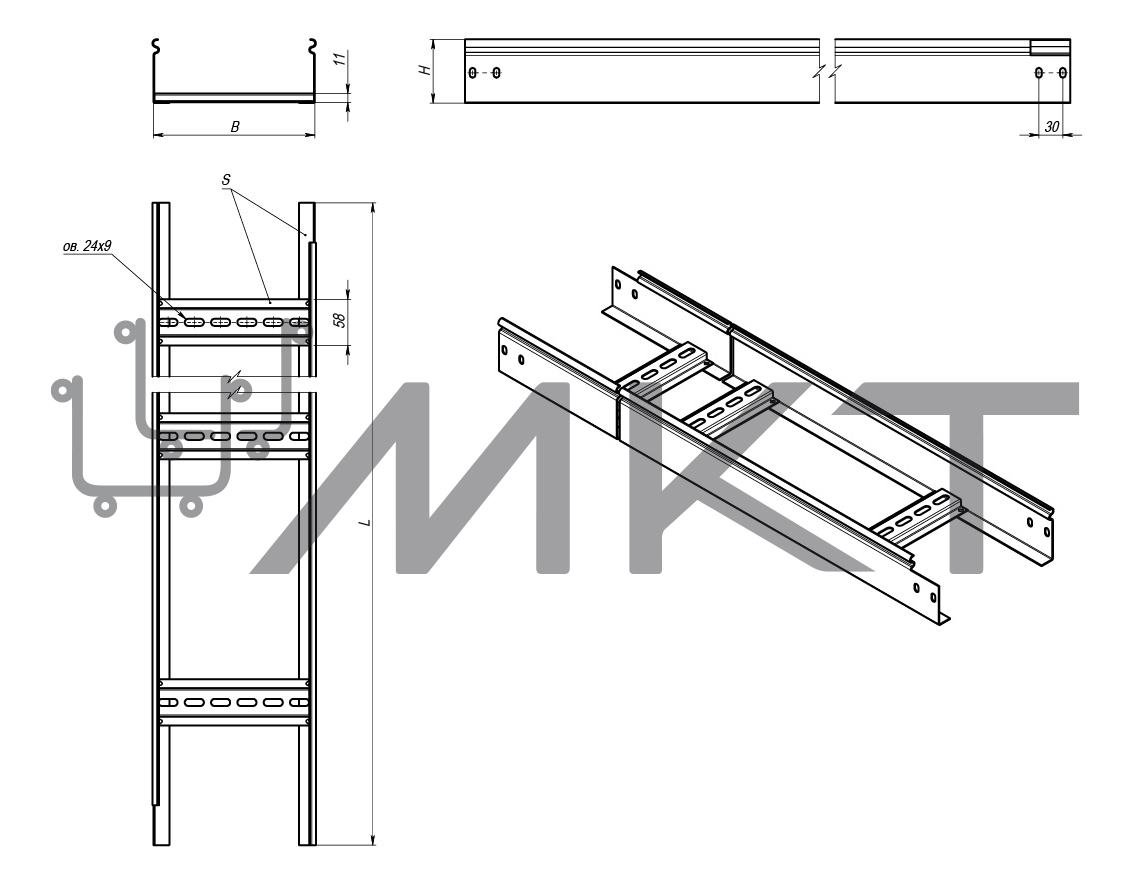 Лестничный лоток с 80 бортом предназначен для организации кабельных трасс в промышленных комплексах, производственно-складских помещениях, коммерческих предприятиях, а также снаружи зданий. Имеет повышенную несущую способность до 200 кг/м. Монтаж лотков между собой осуществляется при помощи системы "быстрой фиксации" с применением КС6х10, а также с помощью аксессуаров для монтажа