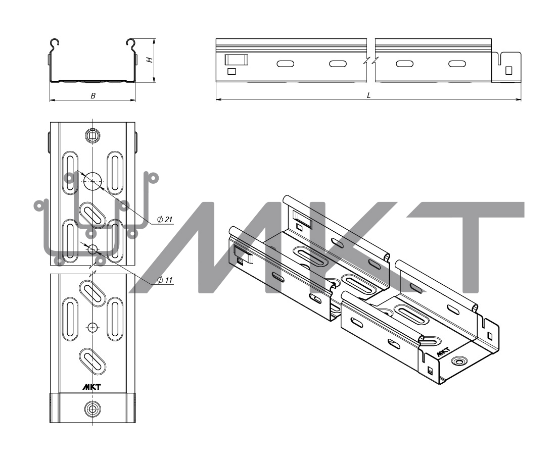 Перфорированный лоток 50х100х3000 предназначен для организации кабельных трасс в производственно-складских помещениях, коммерческих предприятиях, промышленных комплексах, а также снаружи зданий. Монтаж лотков между собой осуществляется при помощи системы "быстрой фиксации" с применением КС6х10, а также с помощью аксессуаров для монтажа. Оцинкован по методу Сендзимира.