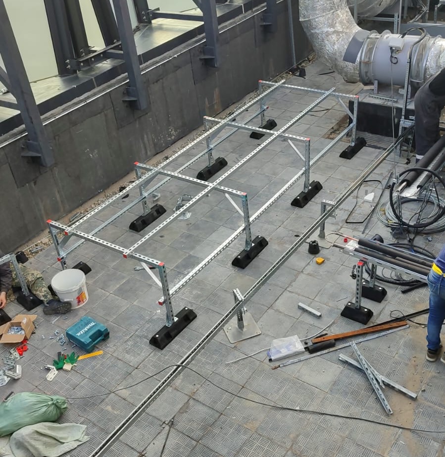 Система кровельных опор — это современное комплексное решение из быстровозводимых опорно-каркасных конструкции, состоящих из страт-профилей, монтажных аксессуаров и специализированных опорных элементов, предназначенных для безопасного размещения инженерного оборудования на кровле зданий и сооружений.