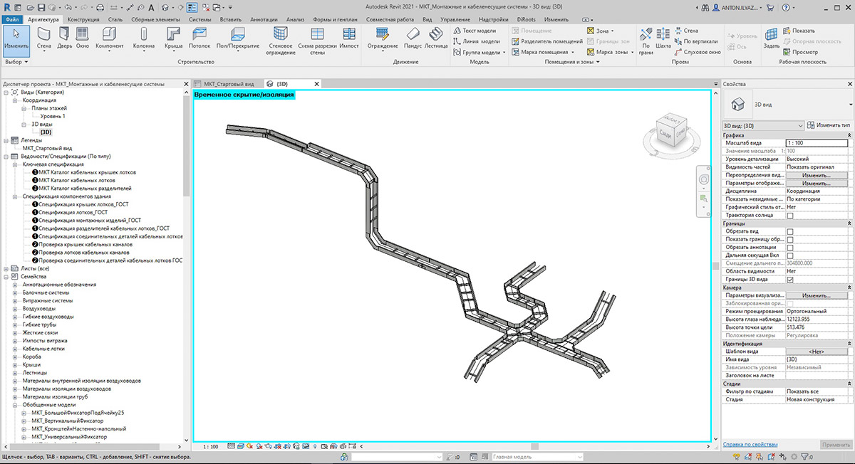 Удобный инструмент для автоматизированного проектирования, реализующий принцип информационного моделирования зданий. MKT-REVIT включает в себя семейства кабеленесущих систем MKT. Использование его позволяет: